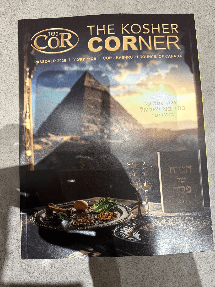The 2026 Passover edition of The Kosher Corner published by COR - Kashruth Council of Canada. This guide contains updated kashrut listings and halachic information for the Pesach holiday. In excellent, like-new condition.