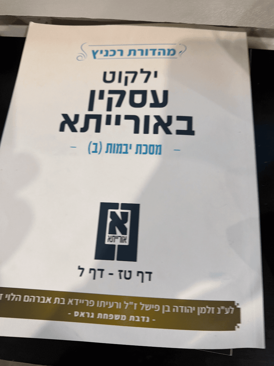 Rechnitz Edition of the Oiskin Bo'oraisa compilation for Maseches Yevamos, Volume 2. This volume covers Daf 16 through Daf 30. The softcover book is in good condition with clean text.
